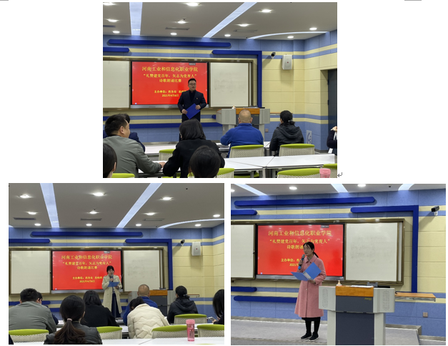 为深入学习贯彻习近平总书记关于教育的重要论述和全国、全省教育大会精神,加强和改进新时代师德师风建设,以高质量的师德建设水平向建党百年献礼,围绕“礼赞建党百年,矢志为党育人”主题,4月6日下午,我院教务处与基础部共同举办了“礼赞建党百年,矢志为党育人”师德师风诗歌朗诵大赛。