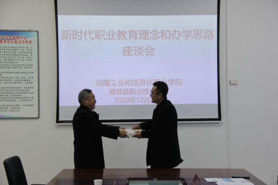 本次活动以“新时代职业教育理念和办学思路座谈会”为主题,互换了人才培养方案,并参观了修武县职业技术学校的校容校貌,听取了学校的规划布局与整体情况。