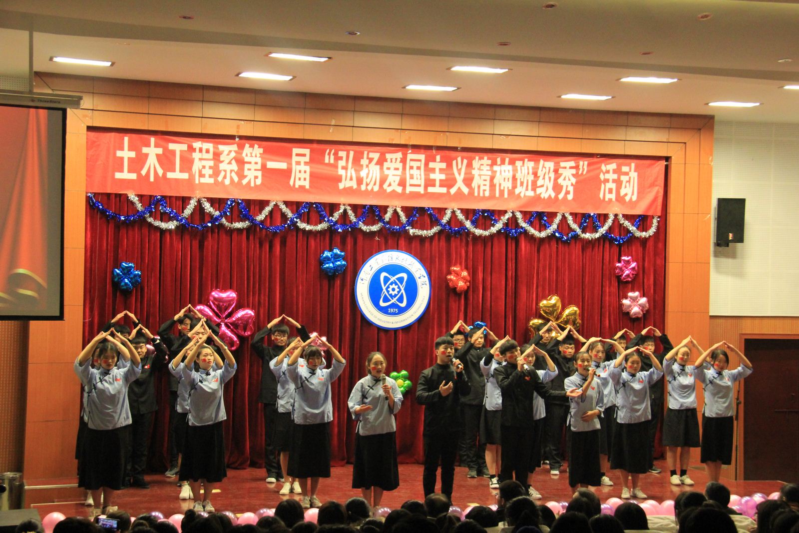 为弘扬爱国主义精神,引导学生建功立业新时代,凝聚班级向心力,营造正面、积极、团结、好学的校园文化氛围,培养学生高尚的道德情操和高雅的审美情趣,12月11日,我院土木工程系在多功能报告厅举办了“弘扬爱国主义精神”班级秀活动。经过前期预赛的选拔,共有7个班级的12支队伍进入了11日下午举行的决赛。