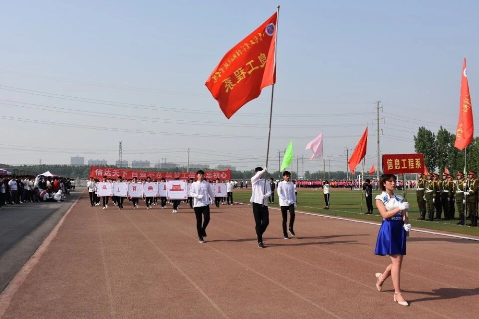 4月18日下午,我院第35届春季田径运动会在田径场隆重开幕。院领导毋虎城、陈荣邦、张庆伟、吕况、魏道清、张红兵出席开幕式,学院各处室、系部负责人及全体师生参加了开幕式。开幕式由体育部主任尹国柱主持。