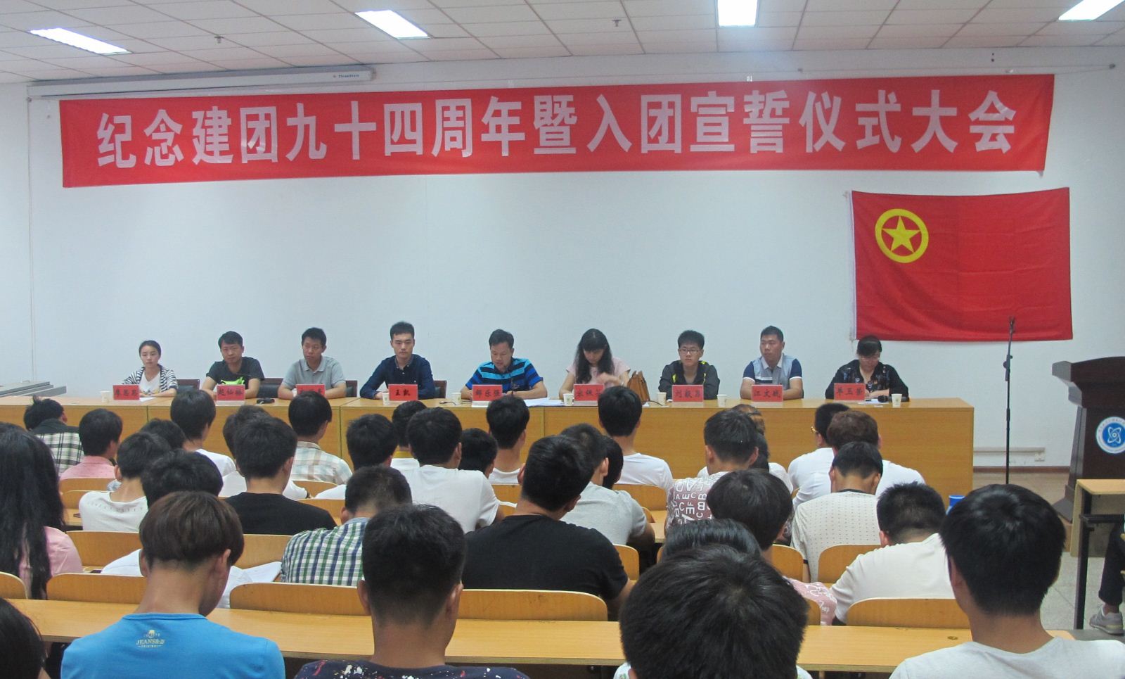 5月5日下午,我院团委在学院第四会议室举行纪念建团94周年暨入团宣誓仪式大会。院团委、学生处、各系部团总支相关负责同志及院团委新老成员共同参加了大会。大会由团委单玉荣老师主持。