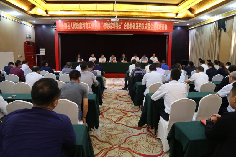 培训开始前,我院与淮阳县人民政府签订了“校地结对帮扶”合作协议,为进一步开展校、政、企深入合作,促进教育链、人才链与产业链的有机衔接,把精准扶贫落到实处奠定了良好的基础。