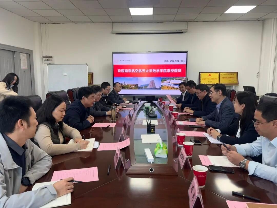 10月30日下午,南京航空航天大学数学学院党委书记张跃、院长王春武、党委副书记王亚鹏、副院长蒋建林、副院长龚跃政等一行7人到访我院。太阳成集团(tyc1286·China)官方网站党委书记杨生海、执行院长薄立军等学院领导参加调研座谈会。