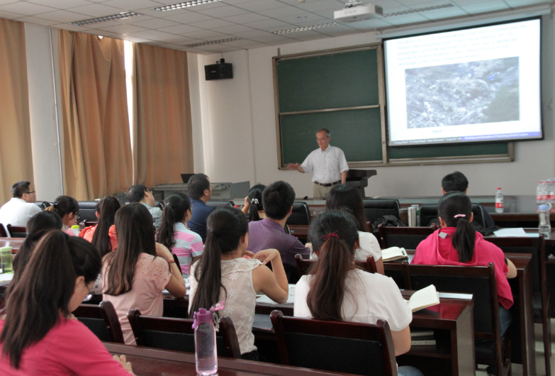 报告会之前,吴事良教授为大家简单介绍了Zhaosheng Feng教授和Goong Chen教授并表示了对他们的欢迎。Goong Chen教授首先做了题为《Computation, Simulation and Visualization of Pulverizing Aircraft Mountain Crashes》的报告。教授以空难飞机坠落碰撞和汽车碰撞引入报告主题,阐述了偏微分方程在航空方面应用的重要性,利用有限元分割法建立飞机碰撞模型并进行详细的模型介绍,最后以动态图的形式为大家演示了实验结果。模型形象逼真,仿真结果生动贴切,教授讲解风趣幽默,让在座师生都深刻的认识到了偏微分方程在航天领域的巨大做用。接着由Zhaosheng Feng教授做了题为《Lie symmetries to Degenerate Parabolic Systems》的报告。他为大家介绍了如何通过偏微分方程行波解来解决生物种群扩散问题,同时介绍了如何利用Lie对称来寻找某些偏微分方程的解。两位教授的报告模型和方式不同,但解决方法都有其突出特点,不仅贴近生活,还结合实际,这引起了大家的极大兴趣并进行了热烈讨论和交流。报告结尾,大家就一些不清楚的和感兴趣的地方咨询了两位教授,他们认真亲切的一一为大家解答,并对大家感兴趣的地方做了更详细的解释。最后,吴事良教授再次感谢两位教授的到来并宣布报告结束。