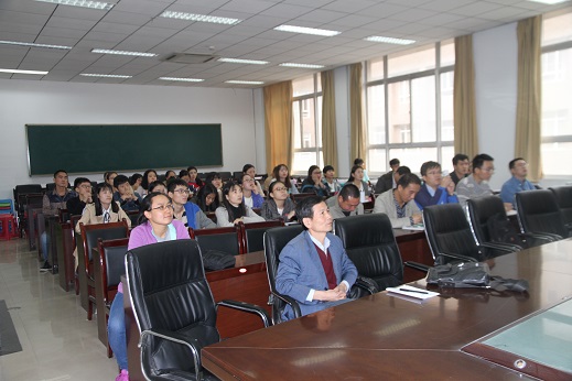 报告开始之前,赵宪钟教授向大家介绍了John C. Meakin教授在代数学研究领域做出的重要贡献。John C. Meakin教授的报告从一些基本的代数学概念入手,重点就一类重要半群:矩阵半群研究的代数意义,国际上在该领域已取得的研究成果,以及目前待解决的公开问题等几个方面展开探讨。报告期间,我院青年教师杨丹丹老师就相关公开问题的研究意义及方案,以及今后的合作方向与John Meakin教授进行了讨论。John C. Meakin教授思路清晰新颖,语言诙谐幽默,报告从提出问题开始就十分引人入胜,生动有趣又科学严谨,得到了大家的一致好评。报告最后,赵宪钟教授就John C. Meakin教授的报告内容做了精彩的总结,并对教授为大家的精心讲解表示真诚的感谢,报告圆满结束。