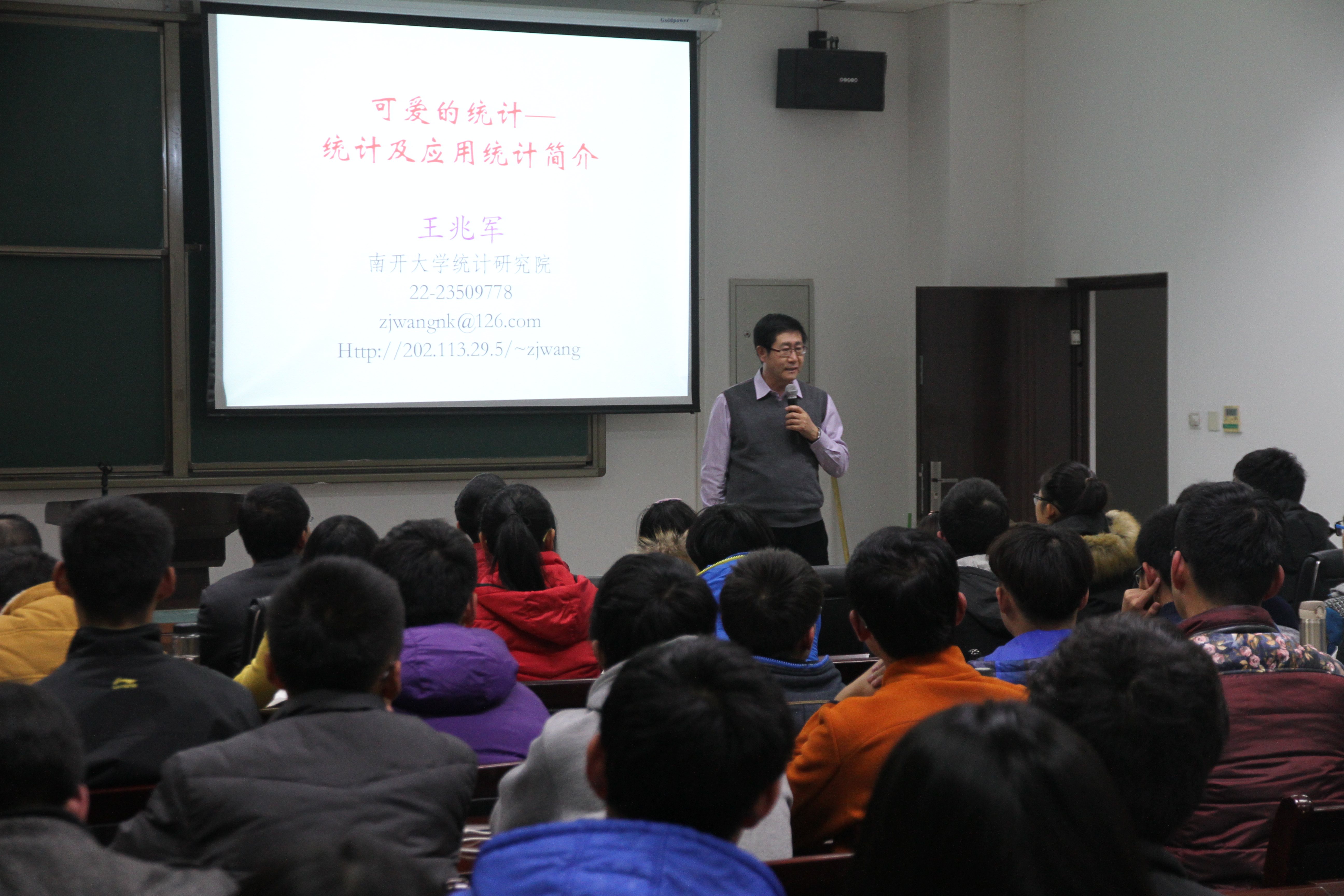 2015年12月21日晚8点,南开大学统计研究院副院长、“长江学者”特聘教授王兆军老师应邀在新校区信远楼2区206报告厅为我院师生作了题为“可爱的统计”的报告,120余名师生参会,报告会由太阳成集团(tyc1286·China)官方网站院长刘三阳教授主持。
