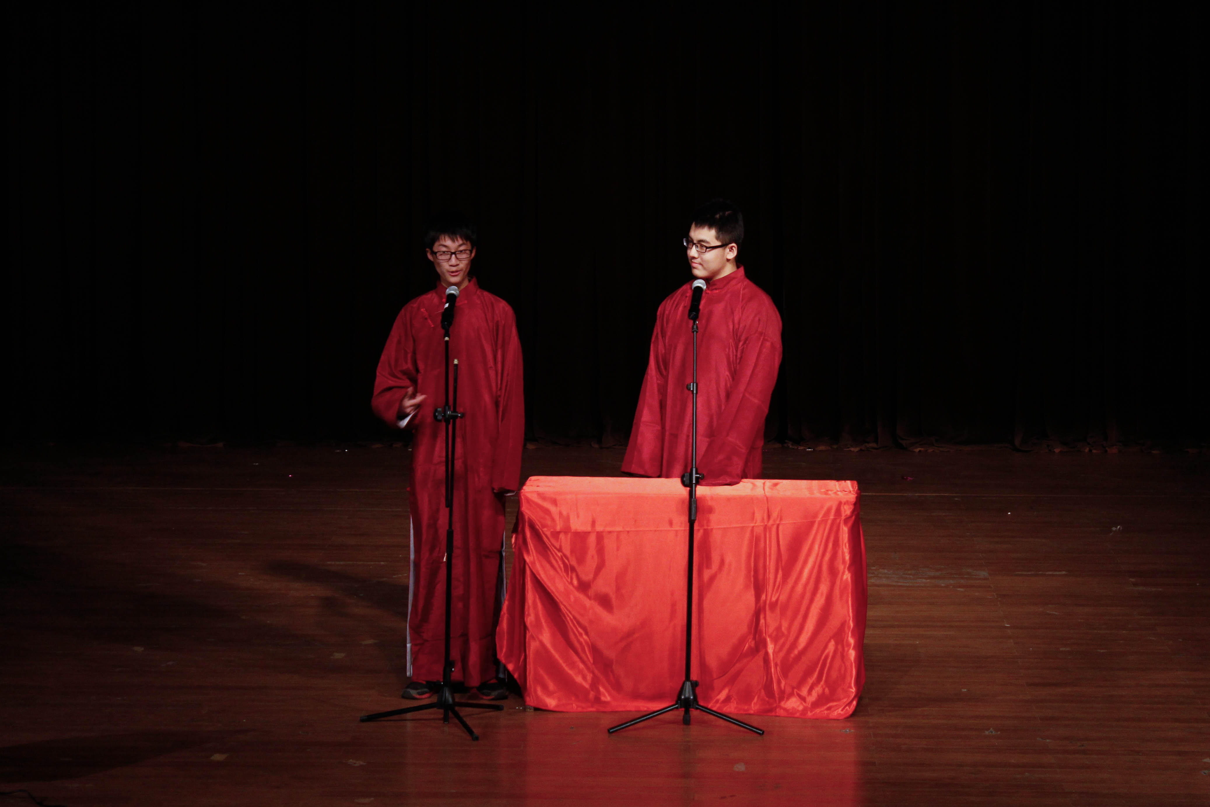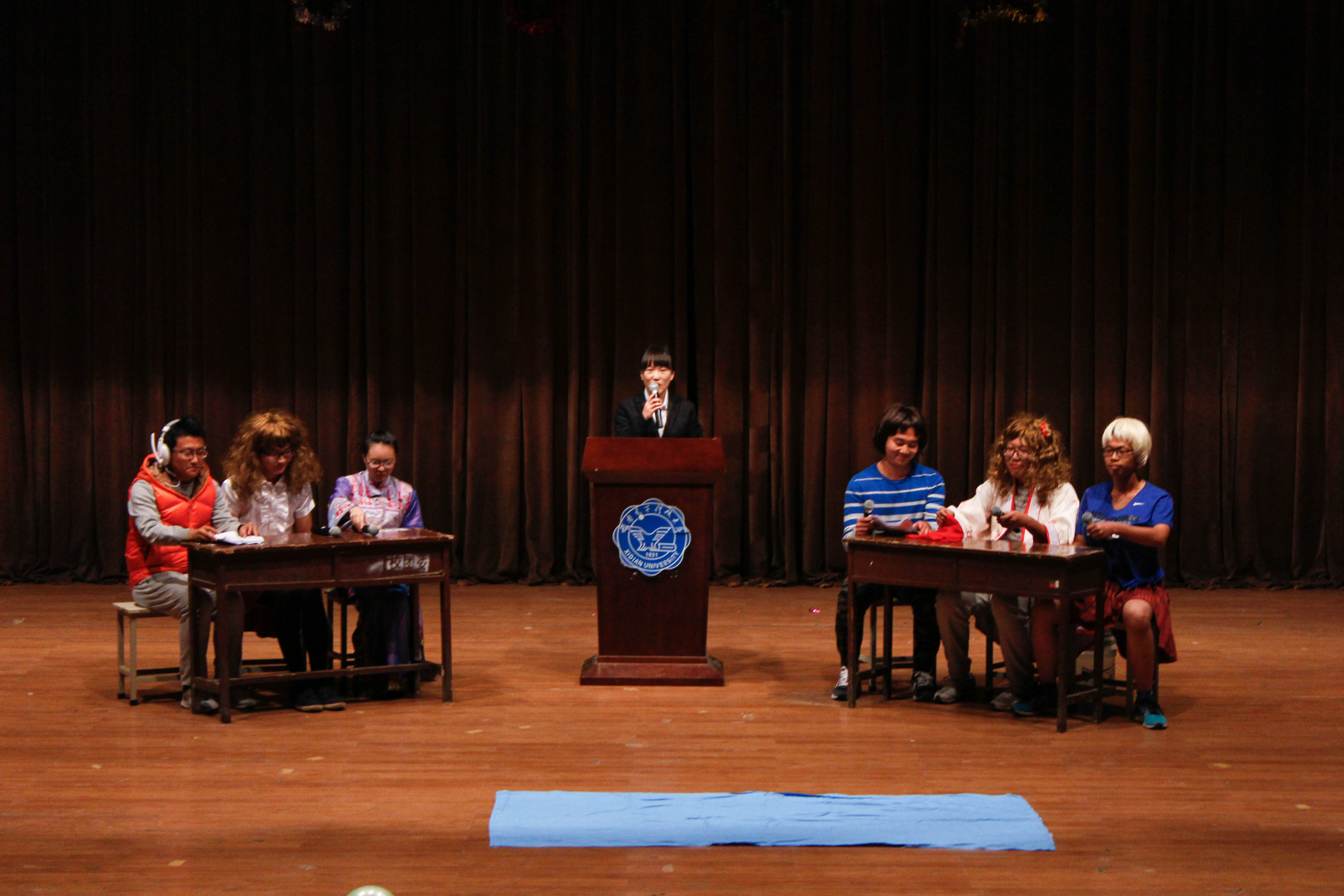 紧接而来的充满生机的街舞表演以及乐队表演,用他们个性的节奏,难挡的魅力征服了一个又一个观众,把全场气氛再一次提升。中间穿插的钢琴表演及优美的歌声则给全场师生一个缓冲的过程,但同时也通过这些表演让同学们在欢笑中相互认识、相互了解。随着相声表演的开始,全场氛围达到一个高潮,所有人都被台上两位相声演员诙谐幽默的语言逗得捧腹大笑。这个高潮氛围并没有随着时间的推移而消退,反而在晚会后半部分中话剧的表演中达到一个空前的盛况。