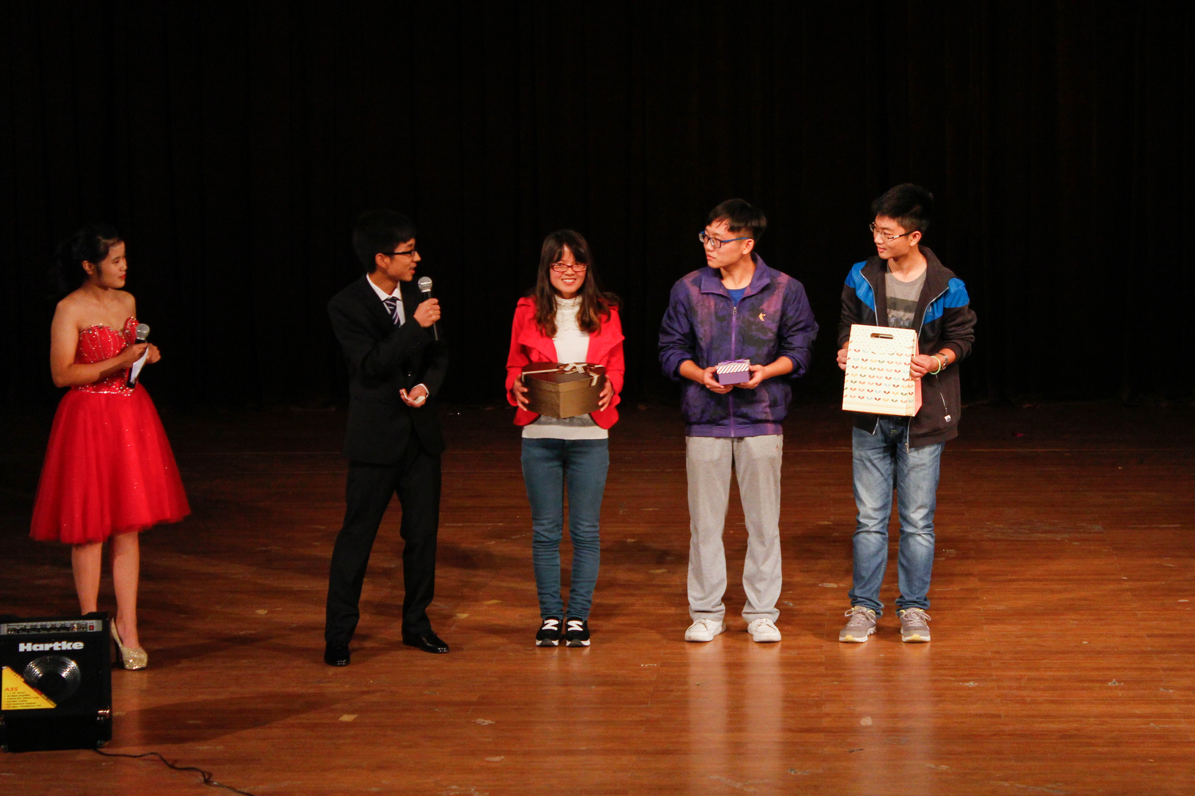 在表演节目之余,一次次激动人心的抽奖活动也在顺利地进行。通过分小组模仿舞蹈动作比赛,同学们都得到了吉米多维奇数学分析习题册,移动电源等众多礼物。也通过微信大屏幕抽奖送给同学们更多的更精美的礼物。但除了得到礼品外更重要的是同学们收获了在晚会中得到的快乐以及同学之间的合作和友谊。