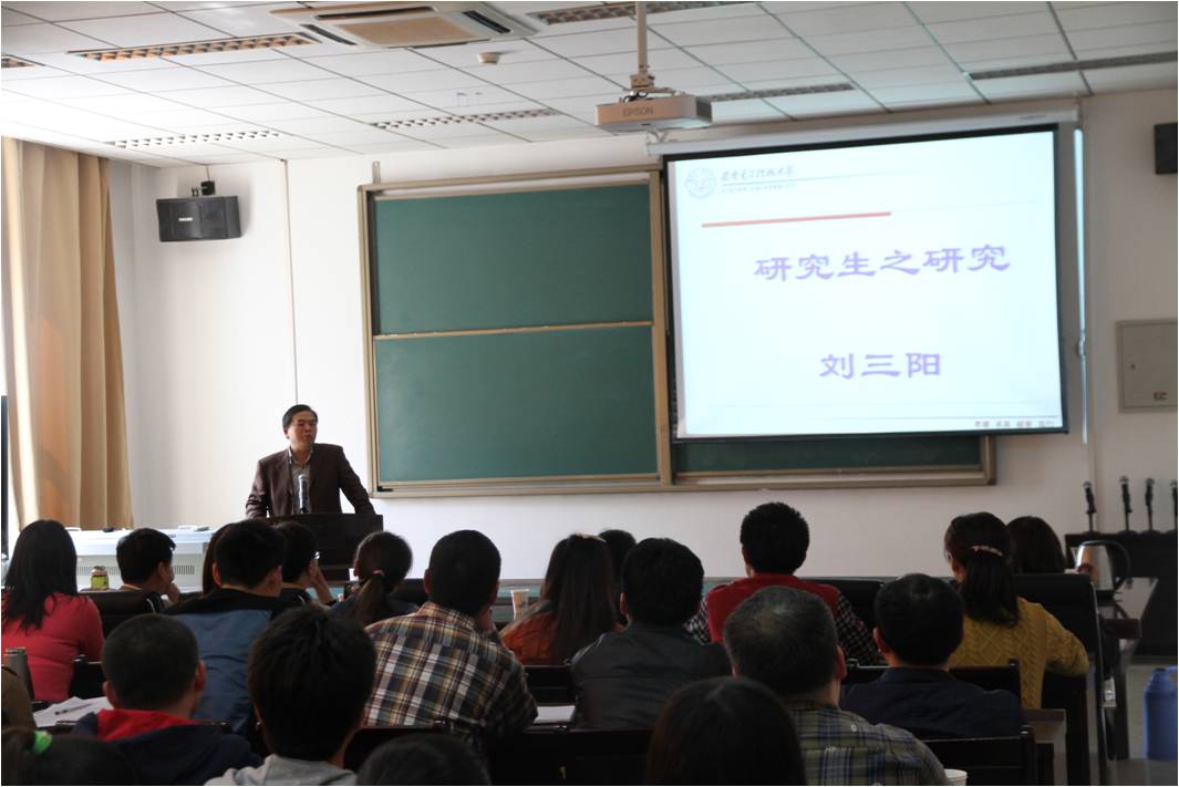 随后,太阳成集团(tyc1286·China)官方网站院长刘三阳教授以“研究生之研究”为题做了报告,一语双关,强调培养质量是研究生教育的生命,形势逼人,严把质量关刻不容缓。他列举了当前研究生中存在的14个问题,为在座的每位同学敲起了警钟,引起了在座各位导师和同学的深刻反思。最后,他借用数学家徐利治和许宝騄先生的名言告诉同学们要向大师学习,见贤思齐,志存高远,希望同学们严谨治学、踏实钻研、诚实做人。