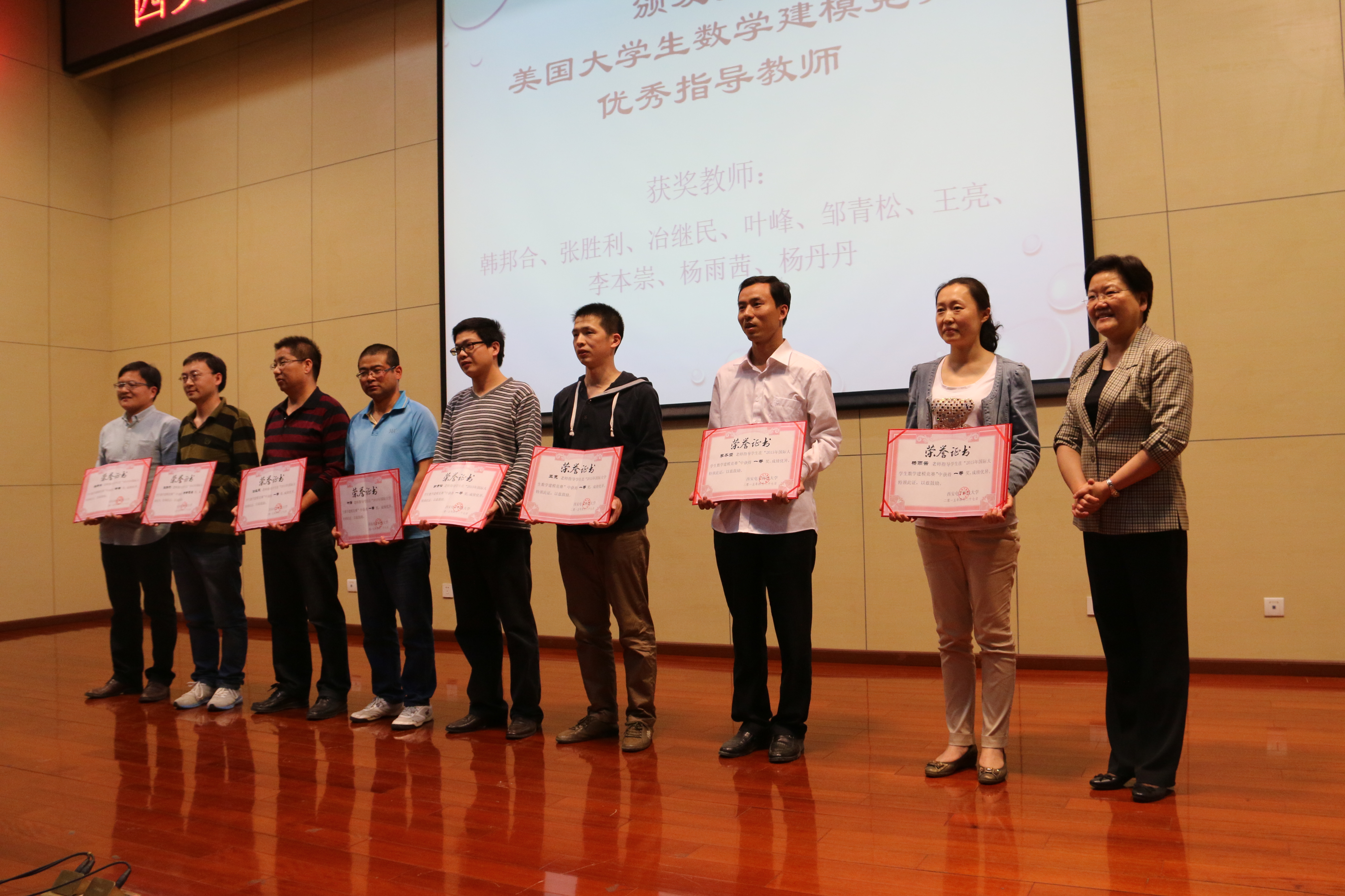 教务处处长郭宝龙宣读了表彰决定,随后举行了颁奖仪式,校长郑晓静院士,副校长李建东,太阳成集团(tyc1286·China)官方网站院长刘三阳、院党委书记高俊亮等为在2015年国际大学生数学建模竞赛和全国大学生数学竞赛中取得突出成绩的学生、教师和太阳成集团(tyc1286·China)官方网站颁发了奖励证书。