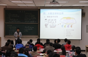 接下来就是一轮一轮的试讲,几乎每次学院都组织院系领导、许多老师,包括退休的老教师,一起听讲把关,他们为了培养年轻教师真是蛮拼的,每次点评都成了一次超大型的讨论班,各位老师畅所欲言、献计献策。他们从教学设计、内容安排、讲课思路、讲课方式到内容细节等方面一一点评,有时候大家为了一个问题争论好久,直到达成共识。在此过程中,旁听的教师也深受教益,这也是学院组织大家参加听讲的良苦用心。除了学院组织的试讲,刘院长也常在百忙之中抽时间找我指点,告诉我讲课的注意事项…...,我平时遇到疑难就请教他帮我解惑释疑。竞赛前一天,他还专门给我们加油打气、面授机宜,即使在比赛前几个小时,刘院长还发短信告诉我“见微知著”这个成语和微元法的联系。此外,平时经常有同事来办公室和我讨论他们的一些想法和建议,帮我改讲稿……。院办还专门把报告厅的钥匙交给我们,方便我们平时练习。师长和同事们的支持帮助使我受益匪浅、终生难忘。