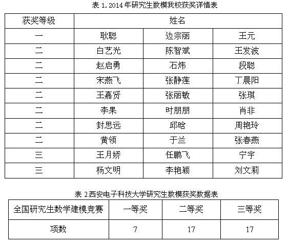 2014年第十一届华为杯全国研究生数学建模竞赛结果日前揭晓,西安电子科技大学共有15支队伍参赛,其中获全国一等奖1项、二等奖7项、三等奖2项,共获10项奖,获奖率高达67%,为我校参赛以来成绩最好的一次。