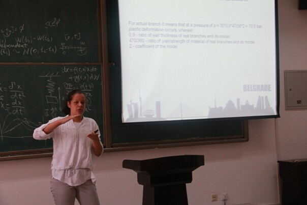 来自贝尔格莱德大学的研究学者Ana Petrovic首先介绍了贝尔格莱德大学土木工程系本科生的课程建设、课程安排以及每年本科生的毕业情况,接着以报告的形式介绍了如何应用数学中的有限元方法对工程结构中某些阻尼构件模型进行求解和仿真。
