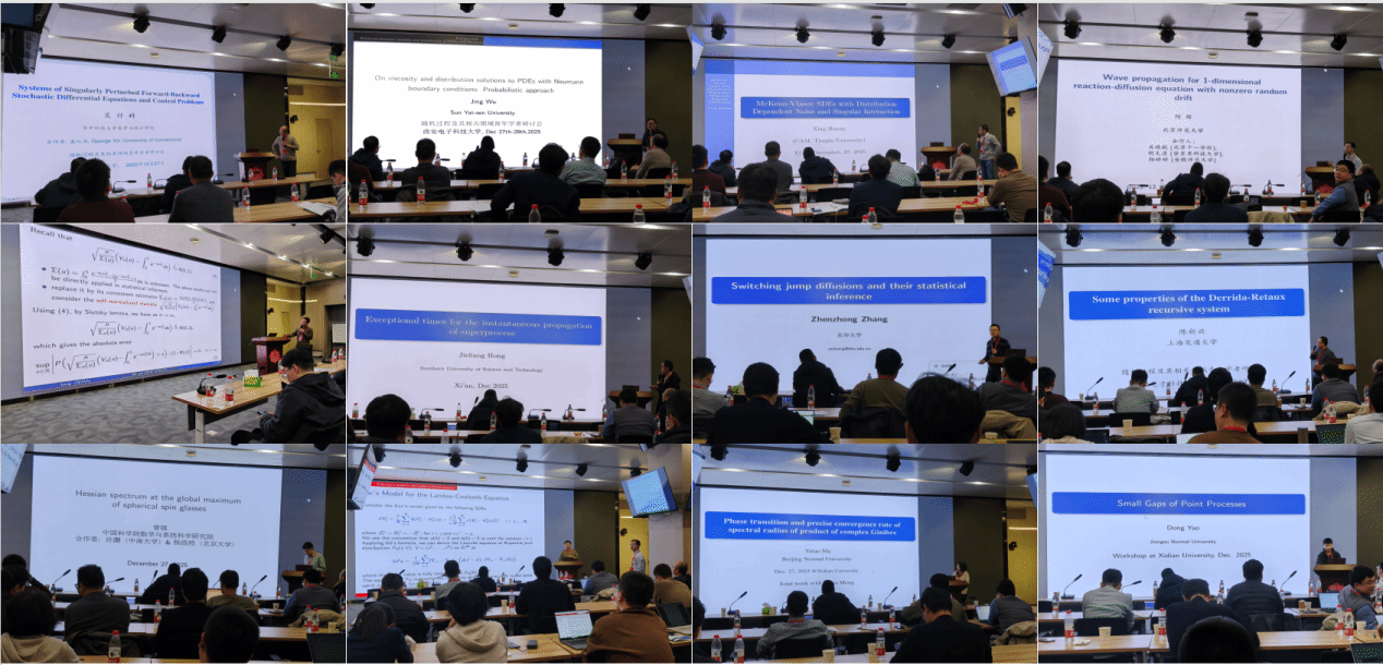 随后,会议进入学术报告环节。本次研讨会共安排24场学术报告,内容聚焦随机过程及其相关领域的前沿方向,探讨了随机过程、随机分析、极限理论等经典课题的创新研究,以及随机过程在统计物理、金融数学、机器学习等交叉学科中的应用与实践。