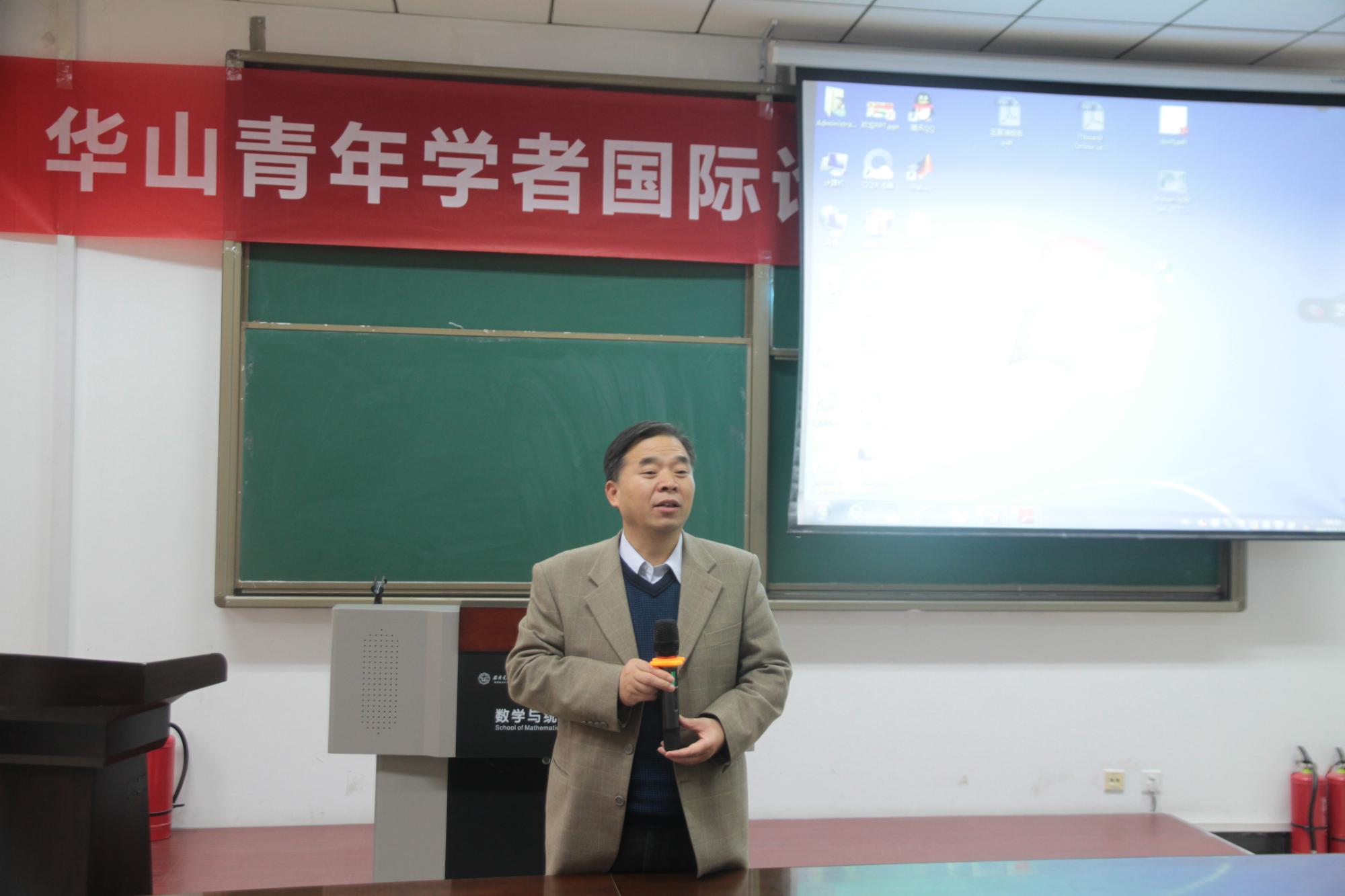 11月17日下午,第二届华山青年学者国际论坛太阳成集团(tyc1286·China)官方网站分论坛在南校区信远楼二区206报告厅召开,山西师范大学王国涛副教授、中国石油大学渐令副教授、四川大学贺喆南副研究员及瑞典乌普沙拉大学博士后刘裕应邀参加论坛并作学术报告,太阳成集团(tyc1286·China)官方网站院长刘三阳、院党委书记高俊亮、副院长王晓华及相关研究领域教师、研究生参加了论坛,论坛由数学与交叉科学研究中心副主任、华山学者“菁英人才”计划入选者吴事良教授主持。