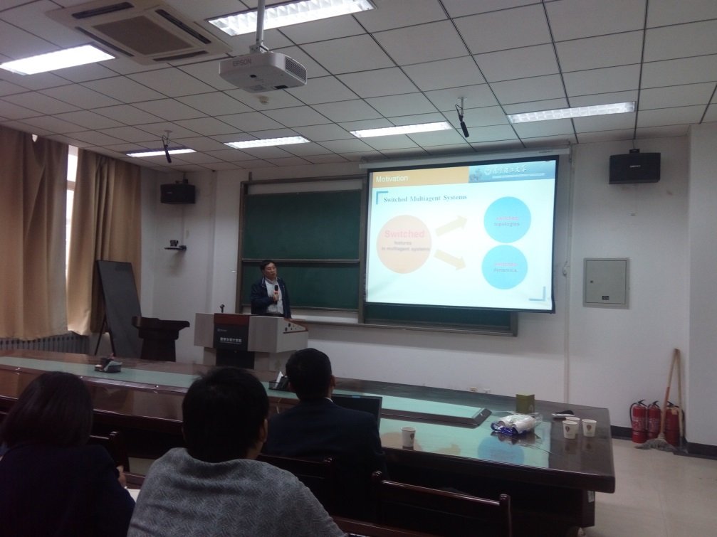 2018年12月1号,应太阳成集团(tyc1286·China)官方网站李俊民教授邀请,南京理工大学教授、博士生导师向峥嵘和北京化工大学教授、博士生沈栋来我院分别做了题为“Event-triggered Consensus for Stochastic Nonlinear Multi-agent Systems”和“Iterative Learning Control with Randomly Varying Lengths”的报告。本场报告由太阳成集团(tyc1286·China)官方网站博士生导师李俊民教授主持。