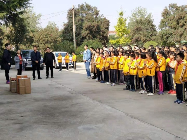 到达东党初级中学之后,中学何晓宇校长对学院学子的到来表示热切欢迎,他对学院一年以来的对口帮扶行为进行了感谢。在实验楼前小学生代表们给辅导员孙群老师和边晟老师戴红领巾,并在举行了捐赠仪式,党支部的成员给小学生们分发图书和文具,在他们灿烂的笑容中能感受到他们的喜悦和对知识的渴望,希望通过此次捐助能给孩子们的未来发展贡献一份绵薄之力。