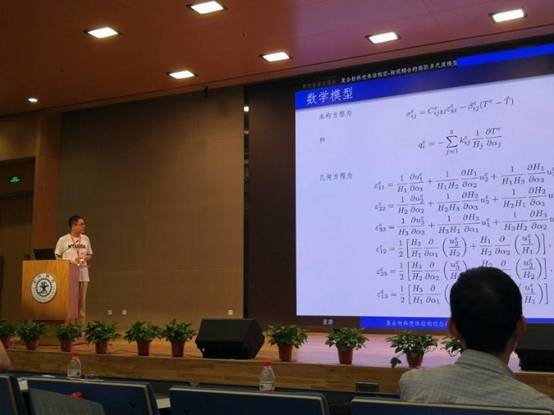 董灏博士与合作者完成的获奖论文首次针对复合材料板壳结构瞬态热-力耦合问题系统发展了一套理论可靠、计算有效的高阶多尺度模型及其多尺度算法,将传统直角坐标系下的多尺度理论拓展到更具一般性的正交曲线坐标系,所发展的高阶多尺度方法已被应用于电磁轨道炮复合材料身管结构瞬态热-力耦合问题的多尺度计算中,具有重要的科学意义和应用价值,论文发表在计算力学、计算数学领域顶级期刊《Computer Methods in Applied Mechanics and Engineering》。董灏博士作为获奖代表应邀做大会报告介绍了获奖论文的研究工作。