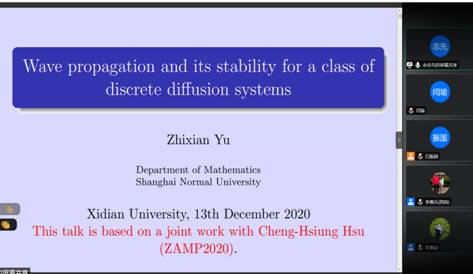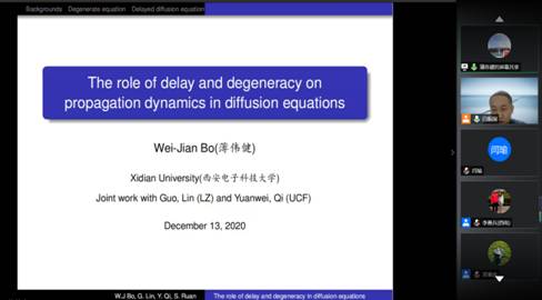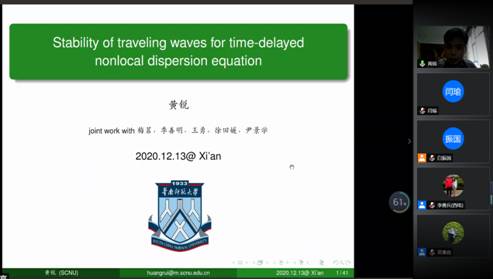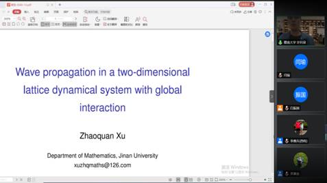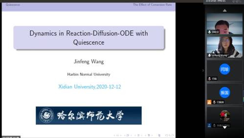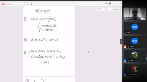 会议持续两天,共有22位国内外著名学者阐述了相关方向最新成果。此次研讨会的成功举办加强了泛函微分方程、反应扩散方程及相关动力系统领域的学术交流,拓宽了与会人员的科研视野。通过线上学术报告的形式,展示了学科方向的最新理论进展,为太阳成集团(tyc1286·China)官方网站本科生、研究生以及青年教师充分了解相关领域的前沿问题以及学科交叉融合起到重要的作用。