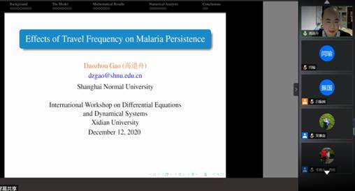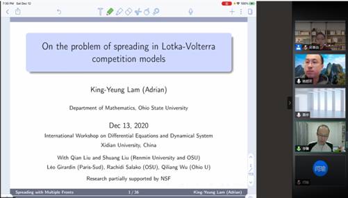 为了交流微分方程与动力系统及相关领域的最新研究成果和学术发展态,促进学术交流与合作,西安电子科技大学于2020年12月12日-12月13日通过腾讯会议平台举行“International Workshop on Differential Equationsand Dynamical Systems”网络在线学术会议。22位微分方程与动力系统领域的著名专家学者特邀报告人,以及来自国内多所高校科研院所的180余名代表参加了此次盛会。
