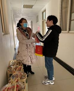 12月24日中午,学院党委副书记王佩副书记、辅导员赵老师为考研学子们亲自送上考前暖心大礼包,每一个礼包都饱含学院师生的浓浓情谊和深深祝福。各类小吃零食能够给沉浸学习的同学们充充饥,能够给在烦闷刷题的同学们解解馋,如果肖四题目太多背不完,也能够喝杯咖啡重新振奋精神。老师们的细心准备给同学们家一般的温暖,虽然大家离家千里来求学,但学院也能成为大家的避风港,在最后冲刺阶段给大家最诚挚的关怀。