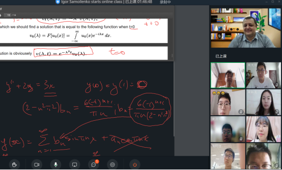 7月13日~26日,Igor Samoilenko教授主讲了《Real Analysis》(实分析),两位助教老师和32名学生一道学习了16学时的全英文课程。Samoilenko教授在课堂上通过详细的板书和有条不紊的阐述把看似高深抽象的内容讲解得深入浅出、简单易懂,课上主动与学生和助教老师互动,课下就在课程群里分享课程视频等学习资料。