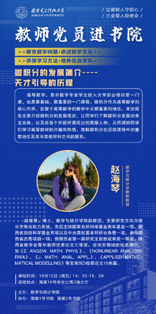 下午14:30,教师党员赵海琴老师在海棠10号学生公寓2楼,为同学们介绍“微积分的发展历程”。