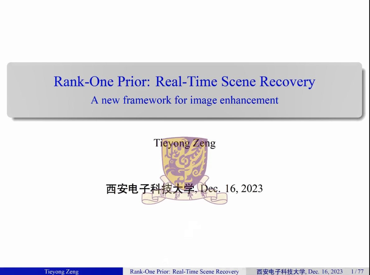 下午举行的第三节,香港中文大学苏文藻教授、曾铁勇教授分别做了题为“NonsmoothNonconvex-Nonconcave Minimax Optimization: Algorithm Design and Convergence Analysis”和“Rank-One Prior: Real-Time Scene Recovery”的报告。