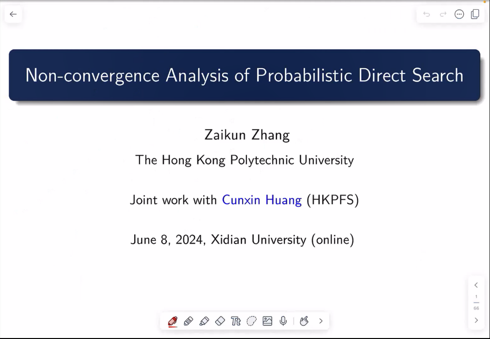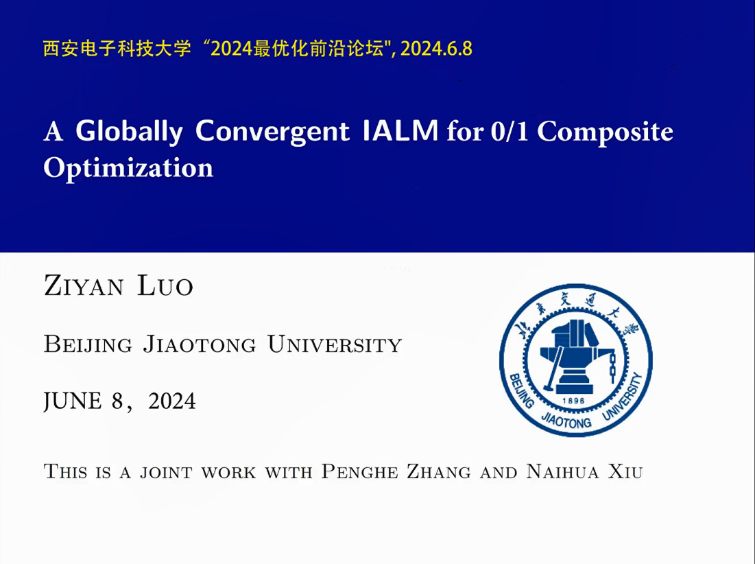 (通讯员赵志华)2024年6月8日,西安电子科技大学举行“2024最优化前沿论坛”线上学术交流(腾讯会议:259-234-805),包括香港地区在内的全国各地近100名优化工作者参加了此次论坛。