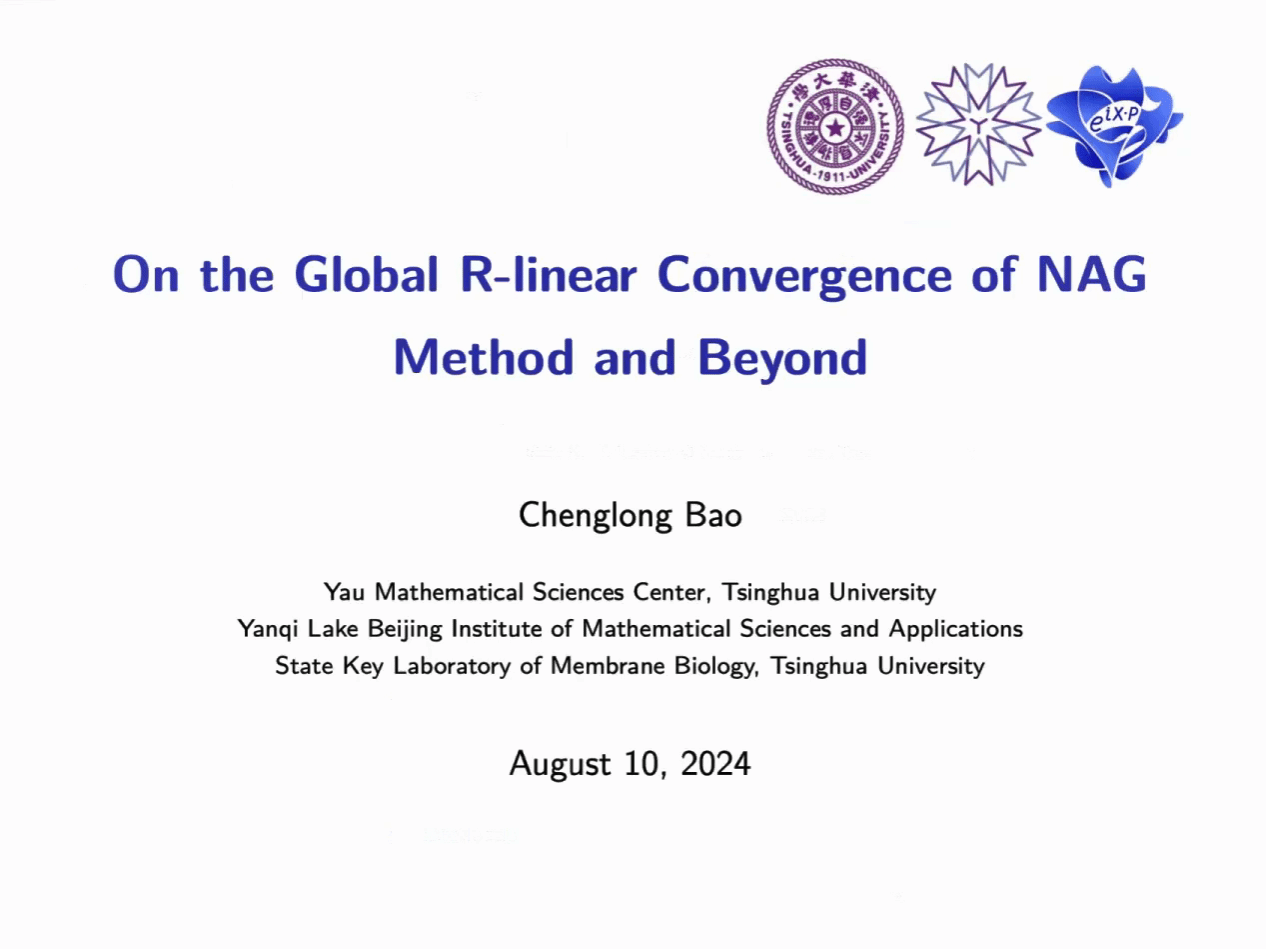 下午举行的第三节,北京交通大学周声龙教授、清华大学包承龙副教授分别做了题为 “Sparse Optimization via Second-Order Methods” 和 “On the Global R-linear Convergence of NAG Method and Beyond” 的报告。
