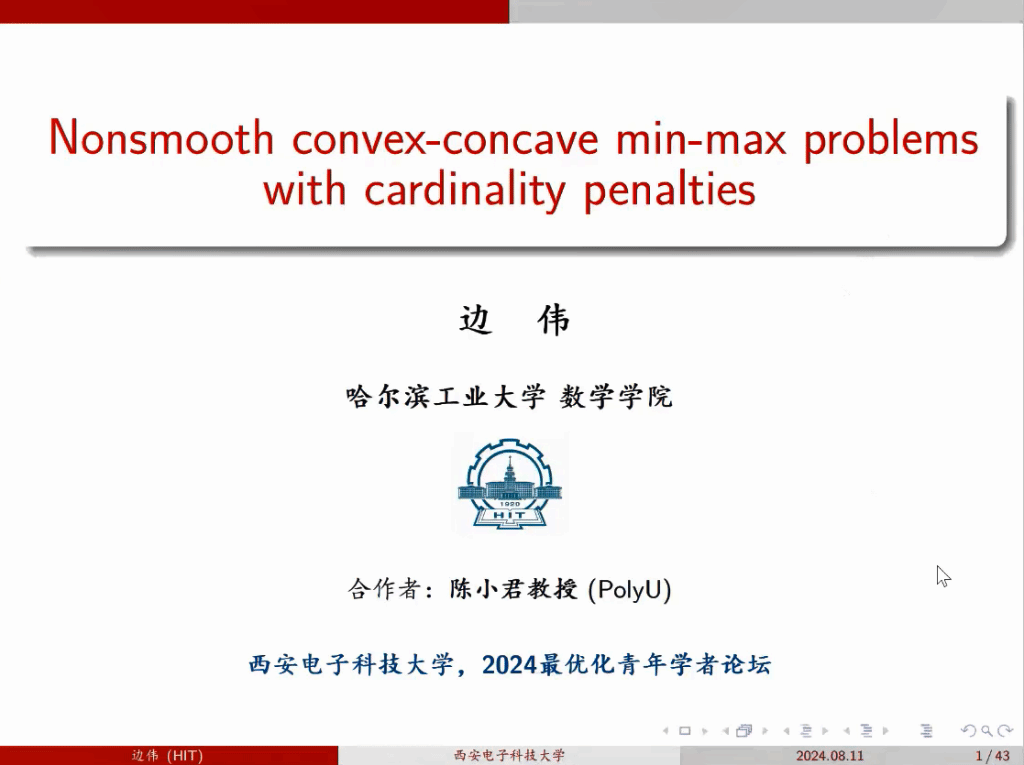 (通讯员 赵志华)2024年8月10日,西安电子科技大学主办的 “2024最优化青年学者论坛” 在腾讯会议成功举办,全国各地近100名优化工作者参加了此次论坛。这也是继西电6月8日主办的“2024最优化前沿论坛”之后的又一次最优化学术盛会。