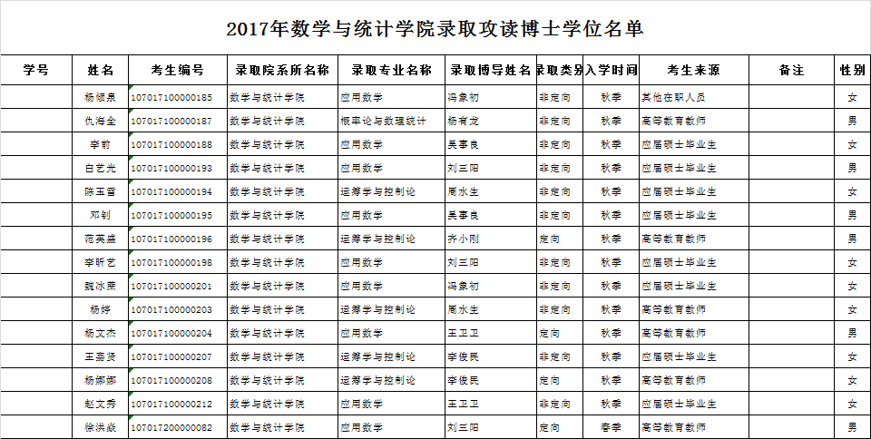 2017年太阳成集团(tyc1286·China)官方网站录取攻读博士学位名单