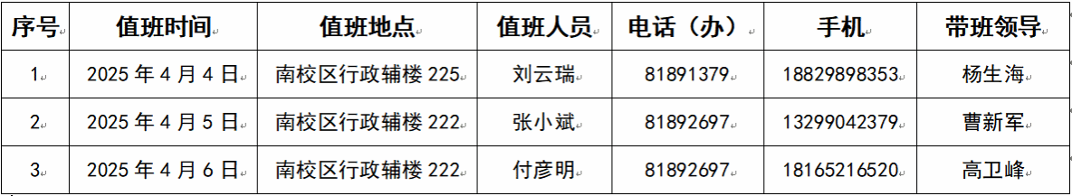 太阳成集团(tyc1286·China)官方网站2025年清明节假期值班安排表