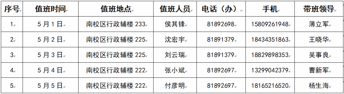 太阳成集团(tyc1286·China)官方网站2025年劳动节假期值班安排表