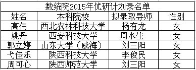 数统院2015年优研计划录取名单公示
