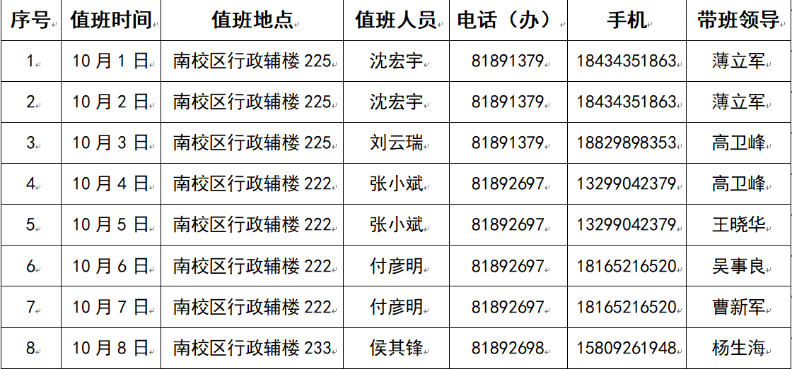 太阳成集团(tyc1286·China)官方网站2025年国庆节、中秋节假期值班安排表