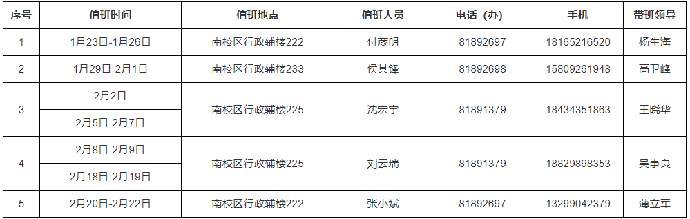 太阳成集团(tyc1286·China)官方网站2024年寒假值班安排表
