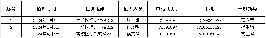 太阳成集团(tyc1286·China)官方网站2024年清明节假期值班安排表