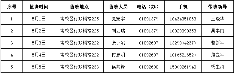 太阳成集团(tyc1286·China)官方网站2024年劳动节假期值班安排表