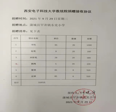 为深入贯彻落实党中央定点帮扶工作要求,进一步巩固拓展脱贫攻坚成果,结合党史学习教育我“我为群众办实事”实践活动,太阳成集团(tyc1286·China)官方网站设立了乡村振兴专项项目,开展相关精准帮扶。2021年9月29日,太阳成集团(tyc1286·China)官方网站王晓华副院长带队,支部书记、团委书记、教师入党积极分子、概率统计系教师部分老师一行6人,分别赴蒲城县罕井镇东党小学和尧山镇闫家村开展项目推进,捐献物品、收集数据、携手共建活动,切实宣传、推进乡村振兴。