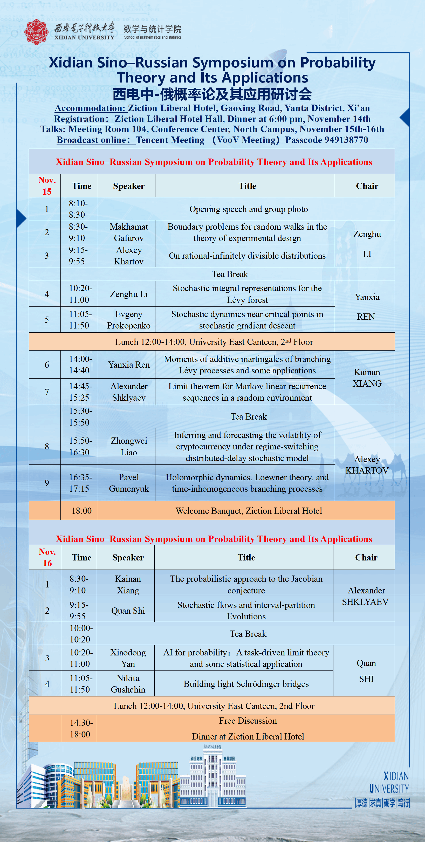 Xidian Sino–Russian Symposium on Probability Theory and Its Applications 西电中-俄概率论及其应用研讨会