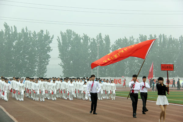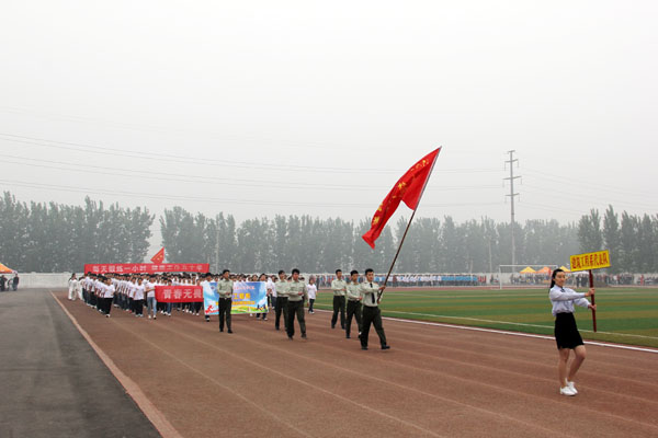 上午8时,伴随着激昂的运动员进行曲,学院仪仗队率先走过主席台。裁判员队、各系、区代表方队,依次迈着矫健的步伐、喊着嘹亮的口号,整齐走过主席台接受检阅。昂扬的风貌、自信的微笑,响亮的口号,表达了同学们积极向上、建设五型校园、美丽校园的信心和决心,引起了现场热烈的掌声。