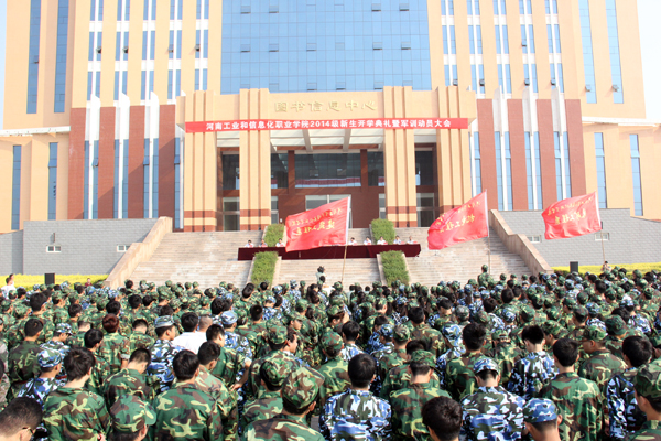 金秋送爽,丹桂飘香。9月5日上午,我院2014级新生开学典礼暨军训动员大会隆重举行。院长翟贵平、中国人民解放军预备役部队409团参谋长路保军少校、副院长毋虎城、席振修、党委副书记陈荣邦、学院相关处室和各系负责人出席大会,中国人民解放军预备役部队409团的部分官兵和近800名新生参加了大会。大会由党委副书记陈荣邦主持。