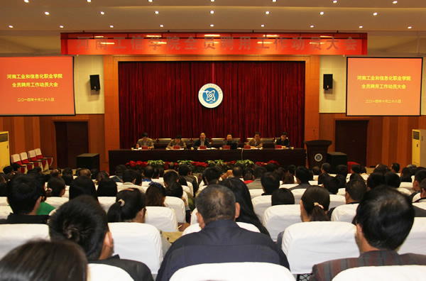 王海长对《河南工业和信息化职业学院全员聘用工作实施方案》、《河南工业和信息化职业学院内设机构及岗位设置》、《河南工业和信息化职业学院中层领导干部聘用实施方案》、《河南工业和信息化职业学院职员、专任教师、教辅人员聘用实施方案》和《河南工业和信息化职业学院待聘人员管理办法》等五个文件给予解读和说明。王海长强调指出,干部调整和聘用工作是推进学院干部队伍年轻化、知识化、专业化,进一步加强和改善学院干部队伍结构,提高干部队伍素质的重要举措,也是加强学院管理,推动学院建设和发展的重要保证,广大干部和教职工要充分认识此项工作的重要性,积极支持学院顺利完成此项工作。陈荣邦对本次聘用工作提出了组织纪律、财经纪律、廉政纪律等方面的要求。