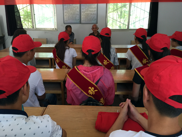 老师和同学们首先来到“太行八英”唯一健在者赵桂英老奶奶的家中,聆听赵桂英老奶奶讲解在战争时期应用游击战术开展地雷战的故事。赵奶奶现已85岁高龄,见到同学们,她非常高兴,为大家演唱了当年的革命歌曲,并为同学们现场作诗一首,勉励同学们要珍惜学习机会,成人成才,报效国家。随后,师生们来到赵庄,聆听赵庄村66岁老党员郜乐银讲解“太行八英”的英勇事迹。82岁的原儿童团成员、游击队员刘顺义为同学们讲解了自己在儿童团、游击队时抗战故事,以及他所经历的艰苦岁月。我院91级毕业校友,现任龙翔办事处书记任长有,结合自己求学成长的亲身经历,向同学们提出了希望和要求。最后,大家向赵庄赠送了“太行八英 巾帼英雄”的锦旗,表达师生们的崇敬之情。