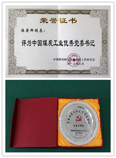 近日,中国煤炭职工思想政治工作研究会下发《关于表彰中国煤炭工业优秀党委书记的决定》(中煤政研〔2015〕28号),我院党委副书记、纪委书记陈荣邦被授予“中国煤炭工业优秀党委书记”称号。