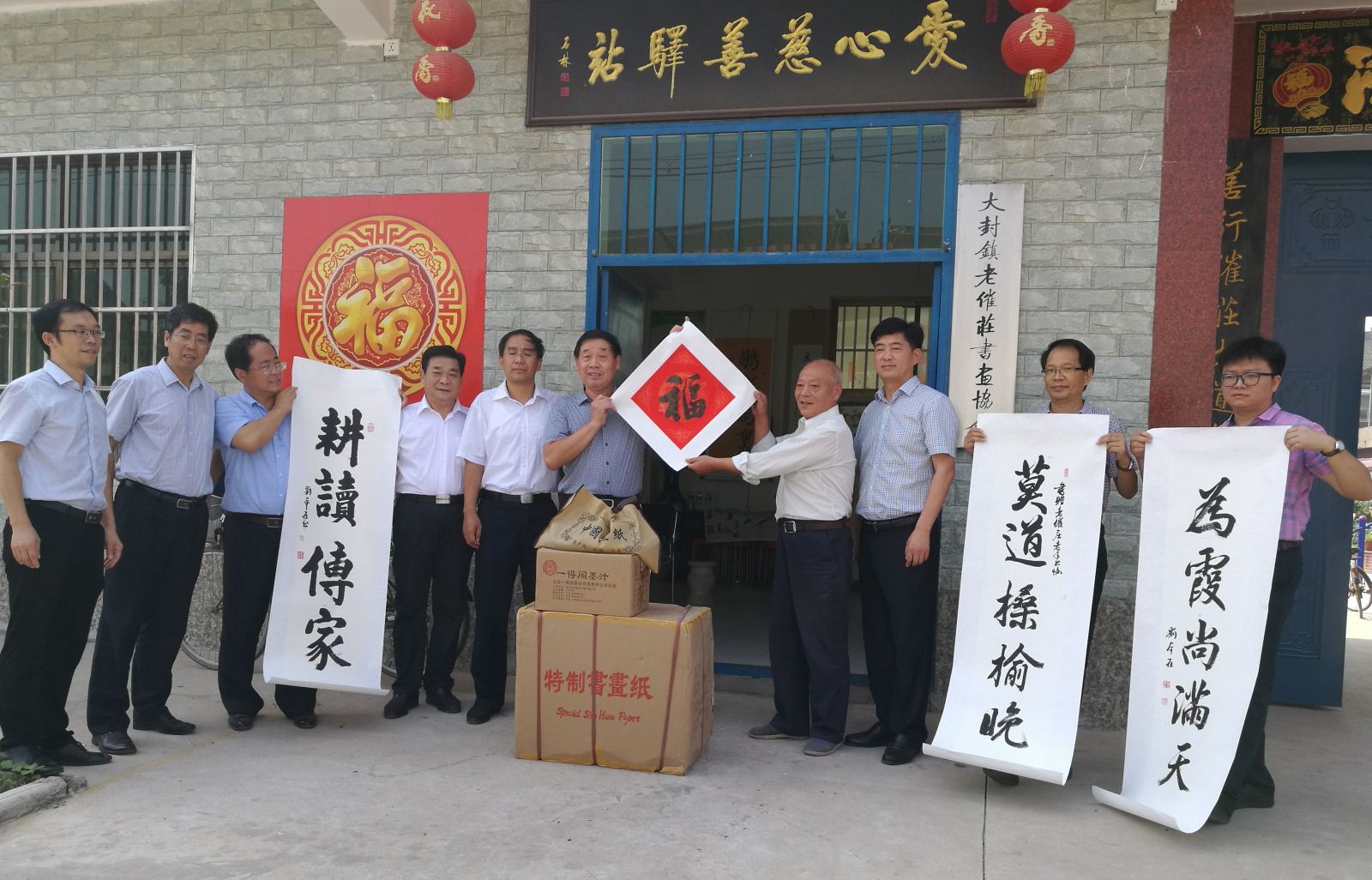 调研组一行先后实地考察了老催庄大队部配套设施、乡村道路建设、环境卫生、民房民舍等情况,重点调研了老催庄慈善幸福院及其配套项目——慈善养殖园及慈善菜园等的建设及运营情况,并向村书画协会捐赠了价值3000余元的笔墨纸等物品。