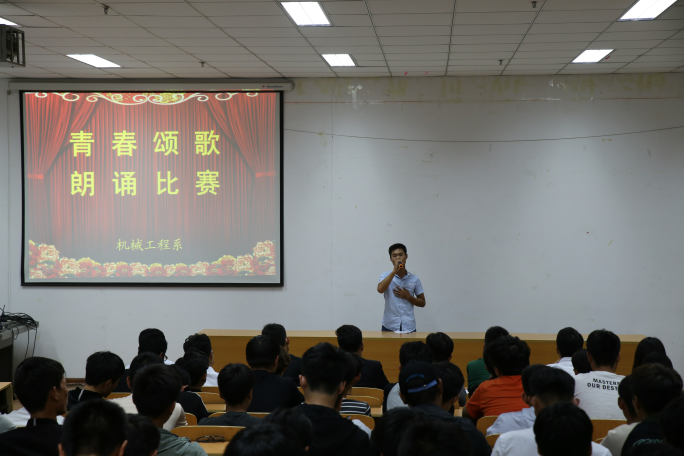 为推广和规范使用国家通用语言文字,活跃校园文化生活,锻炼同学们的语言表达能力,按照《河南工业和信息化职业学院第20届全国推广普通话宣传周活动方案》要求,2017年9月27日下午,机械工程系在信息楼第四会议室举办了“青春颂歌”朗诵比赛。
