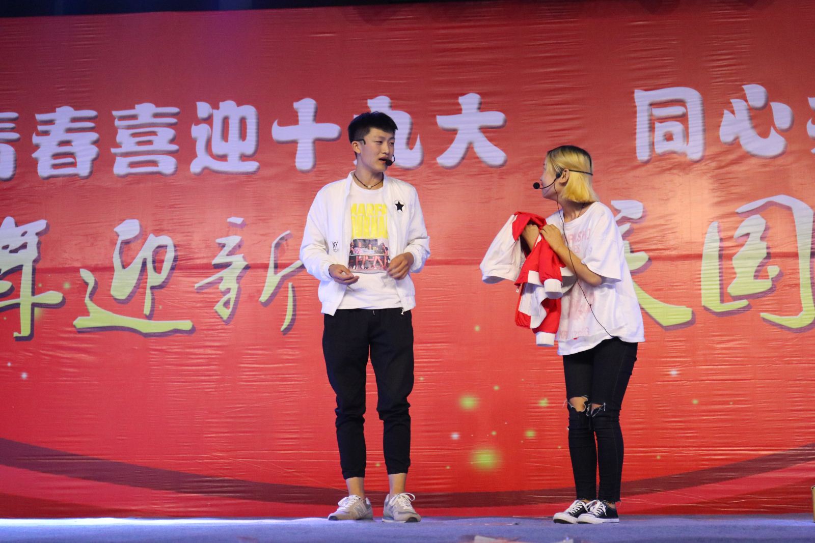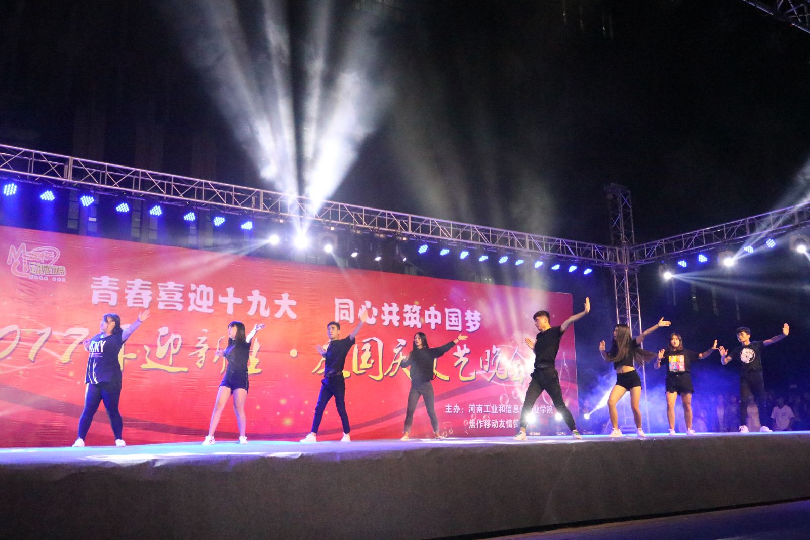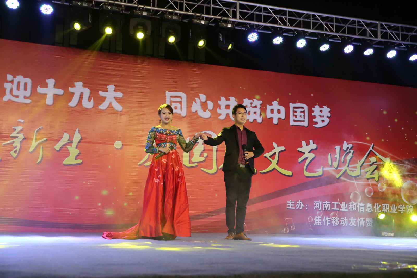 金秋九月意正浓,丹桂飘香迎新生。9月28日晚,我院图书信息广场北侧人头攒动,流光溢彩,歌舞欢腾,由院团委主办、各系协办的“青春喜迎十九大,同心共筑中国梦”2017迎新生庆国庆文艺晚会在这里隆重举行。院领导陈荣邦出席晚会,相关职能部门负责人、各系(部)主管学生工作负责人、新生班主任、辅导员和2017级2400余名新同学一起观看了演出。