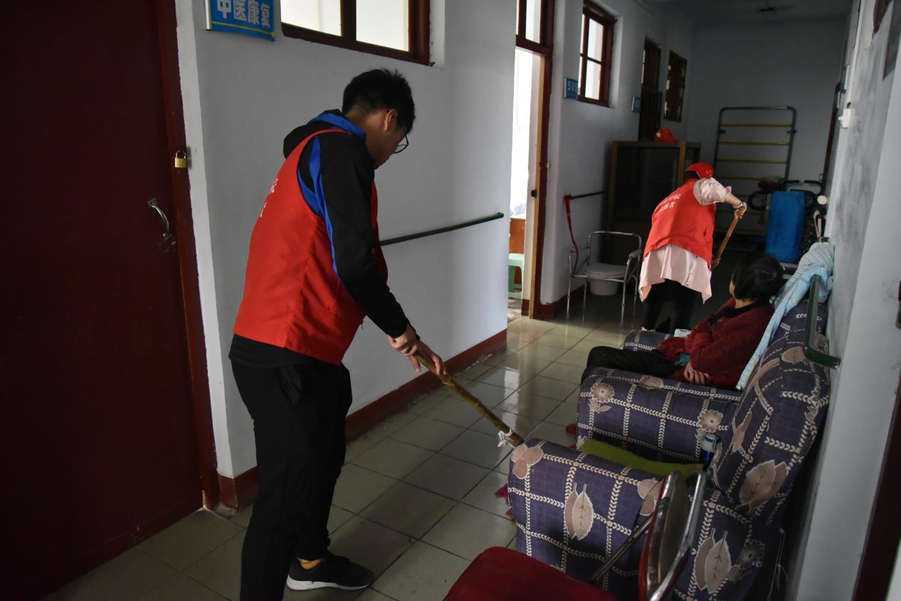 一到养老院,志愿者就把苹果、香蕉等慰问品送到老人们的手里,祝福老人们身体健康,生活开心。他们走进老人们的房间,帮助老人们打扫卫生,装饰房间,给老人剪指甲,和老人们手拉手进行亲切交谈,问寒问暖送上节日祝福。志愿者们以实际行动给养老院的老人送去了关怀和温暖,受到了老人们的热烈欢迎。